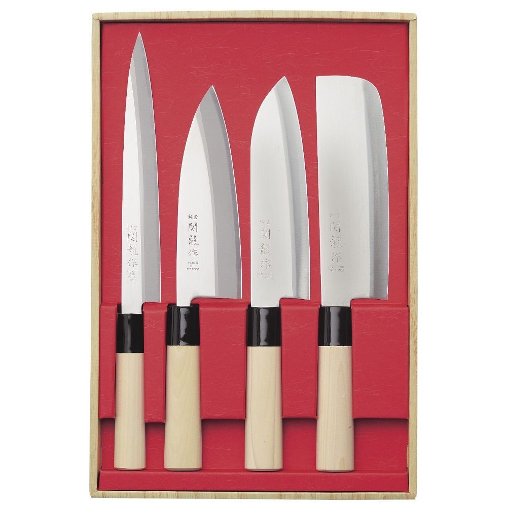 Japanese Knife Sekiryu 4pc Set - Santoku Deba Sashimi Nakiri.
